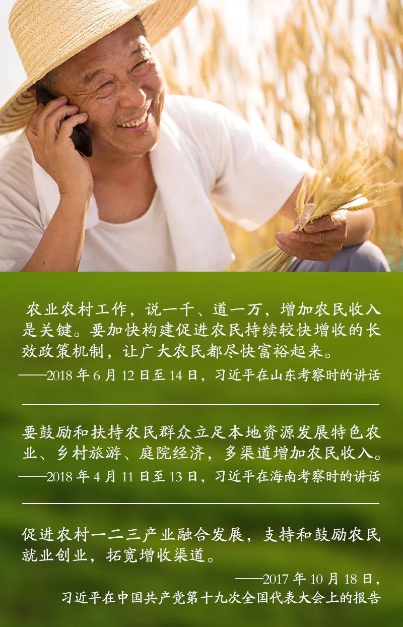 随着我国农业农村现代化进程的不断推进,“丰收”二字已经不仅仅是量的丰产,“让农民的腰包鼓起来”成为新时代丰收的新内涵。习近平总书记明确指出,要让广大农民在乡村振兴中有更多获得感、幸福感、安全感。2018年6月,习近平在山东考察时,语重心长地叮嘱随行的地方干部:“农业农村工作,说一千、道一万,增加农民收入是关键。”