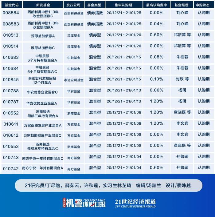 12月22日,申万菱信基金发布公告称,旗下申万菱信聚源宝债券型证券投资基金因未能满足基金合同规定的基金备案条件而未能成立。该基金于今年12月15日开始募集,18日结束募集。