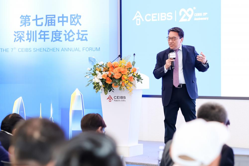 11月27日,以“大时代、大变局、大湾区——企业高质量发展的路径和逻辑”为主题的中欧国际工商学院29周年校庆暨第七届中欧深圳年度论坛在中欧深圳校区举行。