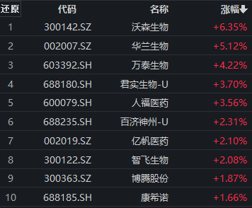 A股医药板块盘中震荡走强。相关指数中,中证创新药产业指数(931152)低开高走翻红。截至发稿,该指数上涨近1%,成分股涨多跌少。上涨个股中,沃森生物涨超6%,华兰生物涨超5%,万泰生物涨超4%,君实生物-U、人福医药涨逾3%,百济神州-U、亿帆医药、智飞生物、博腾股份、康希诺等跟涨。