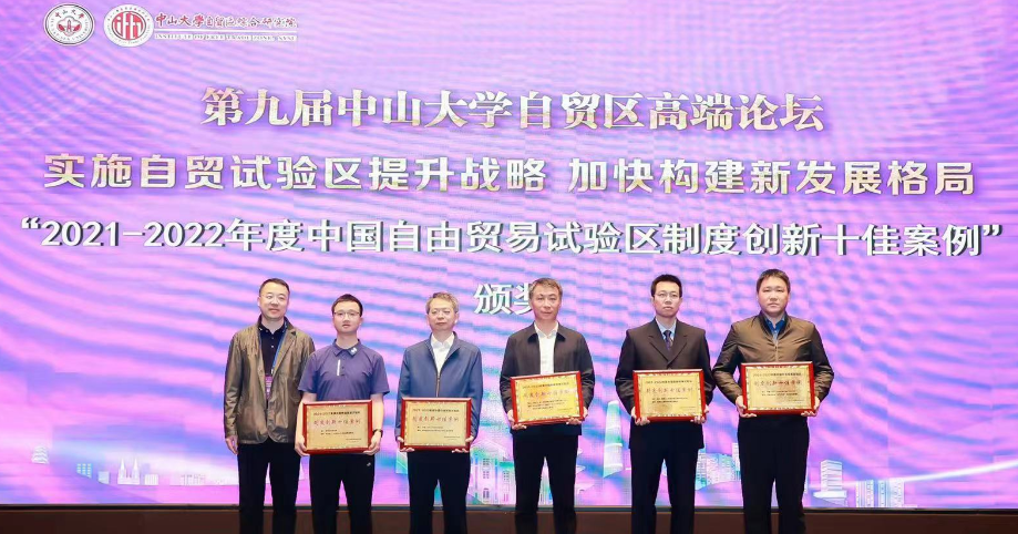 会上公布并表彰了“2021-2022年度中国自由贸易试验区制度创新十佳案例”。其中南沙自贸片区(发布全国首个《对标RCEP CPTPP进一步深化改革扩大开放试点措施》)、海南自由贸易港(备案即入、承诺即入行政审批事项改革)等案例获奖。据评审专家介绍,评选是根据“创新性”“契合性”“区域特色”和“完备性”四大原则,从“贸易便利化”、“投资自由化”“政府职能转变”“金融改革创新”“法治化环境”五个制度创新领域,每个领域评选出2个,最终遴选出十佳案例。