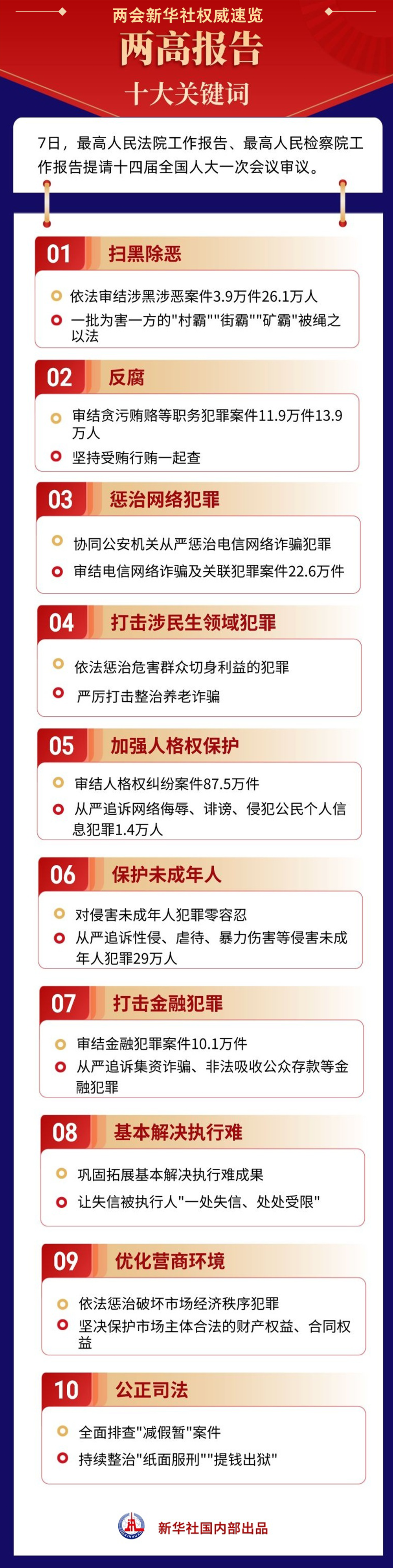 7日,最高人民法院工作报告、最高人民检察院工作报告提请十四届全国人大一次会议审议。