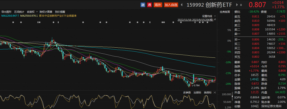 跟踪中证创新药产业指数的ETF中规模最大的创新药ETF(159992)盘中放量上涨。截至发稿,该ETF涨近2%,开盘不足40分钟,成交金额接近1.5亿元。