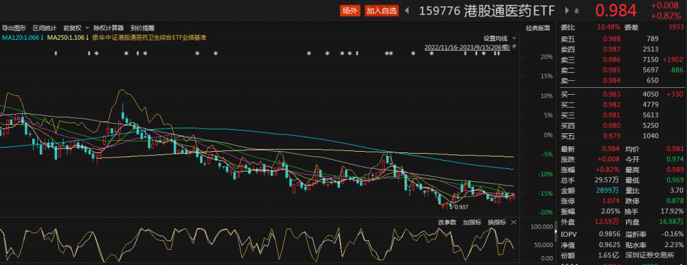 紧密跟踪该指数的港股通医药ETF(159776)低开,盘中拉升翻红。截至发稿,该ETF涨0.82%,换手率17.92%,交投活跃。