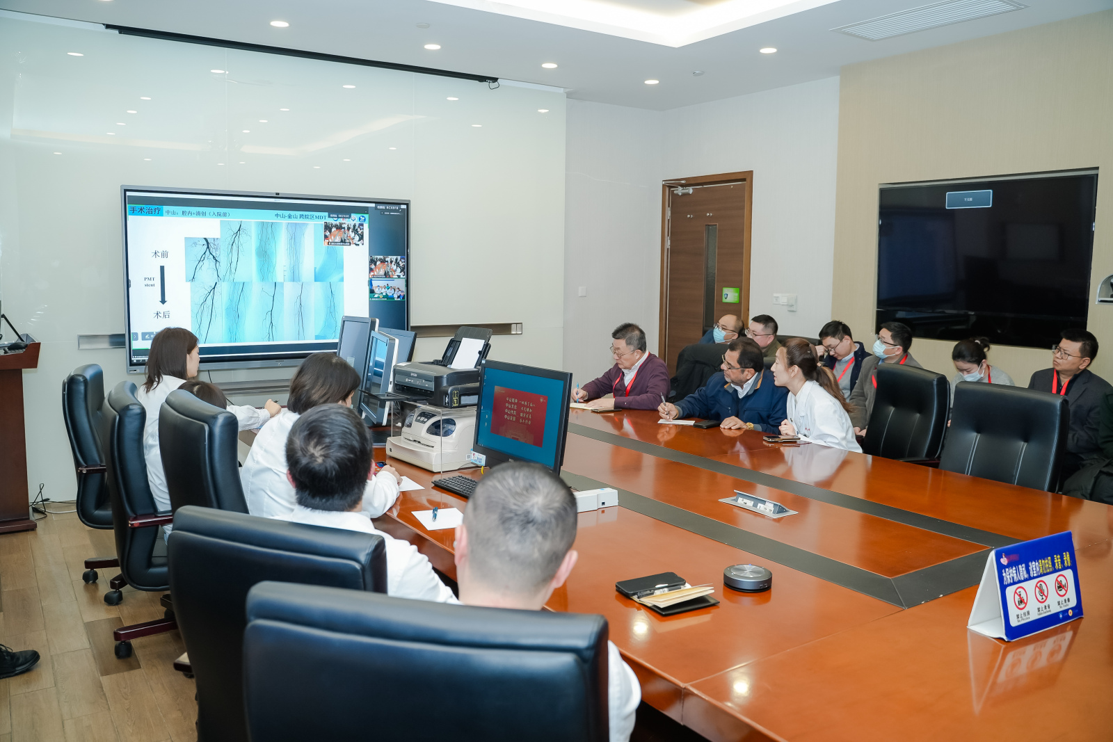 年会首日,来自全国各地的糖尿病足多学科领域的著名专家、学者齐聚复旦大学附属中山医院,参与由中山糖尿病足多学科诊疗中心、金山运行中心组织,涉及血管外科、内分泌科、整形外科、感染科、心内科、创面中心等相关科室,通过线上对话,共同协作完成两组复杂糖尿病足病例讨论的现场。在双方不同科室的医生分别针对两组病例提出专业分析后,与会专家、学者根据病例展开深入的交流与讨论。