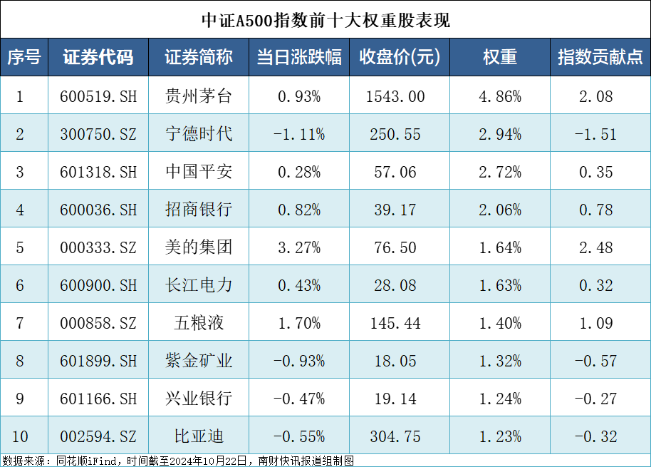 中证A500指数权重股表现