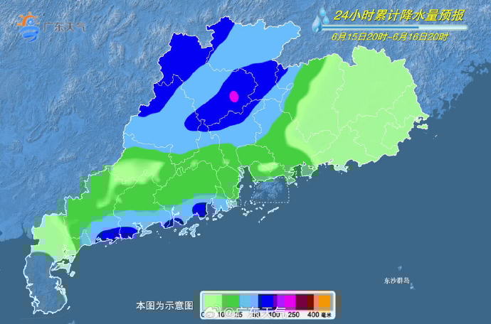 6月15日,韶关、清远、珠三角市县有大雨到暴雨局部大暴雨,其余市县有中雷雨局部大雨或暴雨。