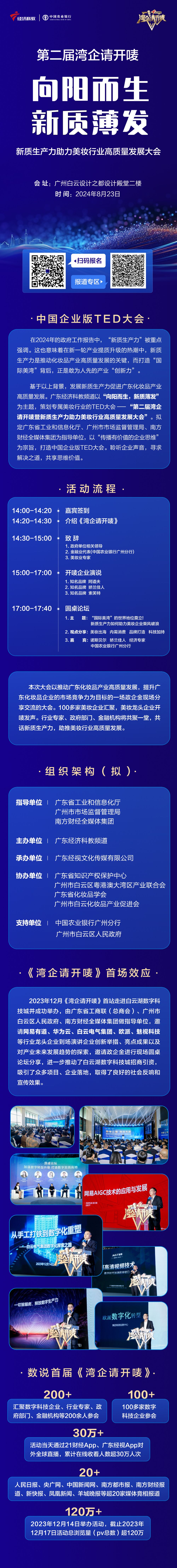 “向阳而生,新质薄发——第二届湾企请开唛暨新质生产力助力美妆行业高质量发展大会”,以“传播有价值的企业思维”为宗旨,打造中国企业版TED大会。现场美妆企业汇聚,美妆龙头企业开唛发声。行业专家、政府部门、金融机构将共聚一堂,共话新质生产力。