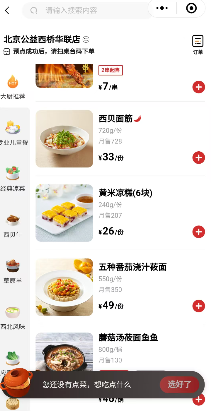 据南方+报道,承诺期限届满当天,记者走访了位于广州正佳广场的西贝门店。该店店长许定鹏介绍,自9月15日起,门店已启动全面调改。除广州门店未售卖的“手撕椒麻鸡”外,其余承诺整改项目均已落实,包括羊肉串现场烤制、燕麦小米粥加入新鲜南瓜现场熬制、儿童餐鳕鱼条现炸等。