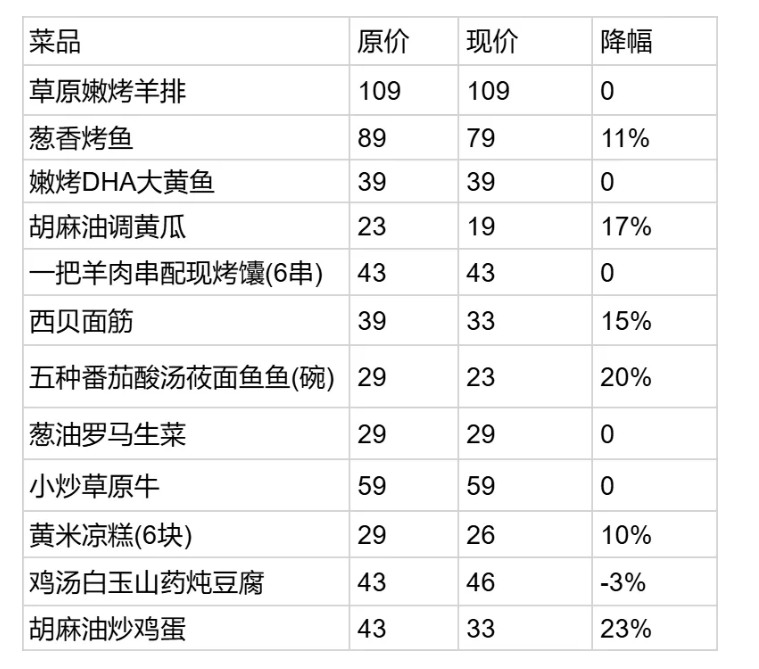 据证券时报·e公司报道,西贝北京某门店接线客服人员向记者表示:“我们昨晚刚接到的通知,今天新菜单刚刚更换,的确不少餐品价格下调。具体降价幅度,您可以来店以及登录西贝小程序查询降价幅度。近期我们为到店顾客发放100元堂食券,您今天也可以到店领取,次日就可以使用。”