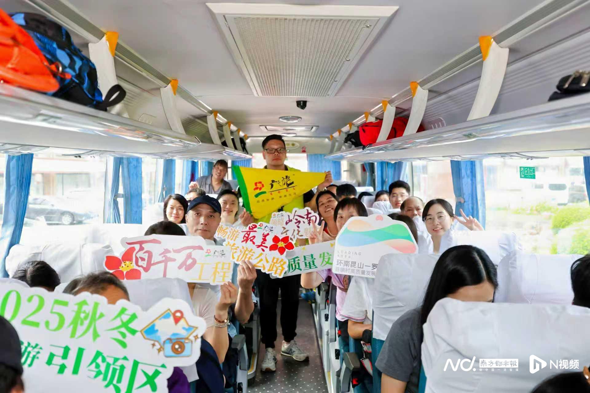 今早8时许,记者在市内周边游出发集合点——东方宾馆广场看到,近200名游客已早早聚集等候。据广之旅介绍,这批游客将乘坐旅游大巴前往惠州、增城、博罗等地,走进“环南昆山-罗浮山县镇村高质量发展引领区”的生态文旅示范区,沉浸式体验自然与人文交融孕育出的红色文化、山水文化与客家文化。