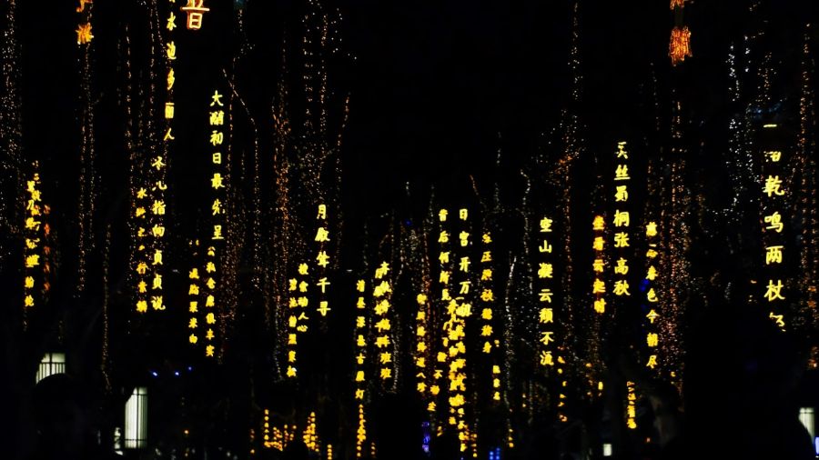 大唐不夜城周边随处可见的古诗词灯箱 凌晨/摄