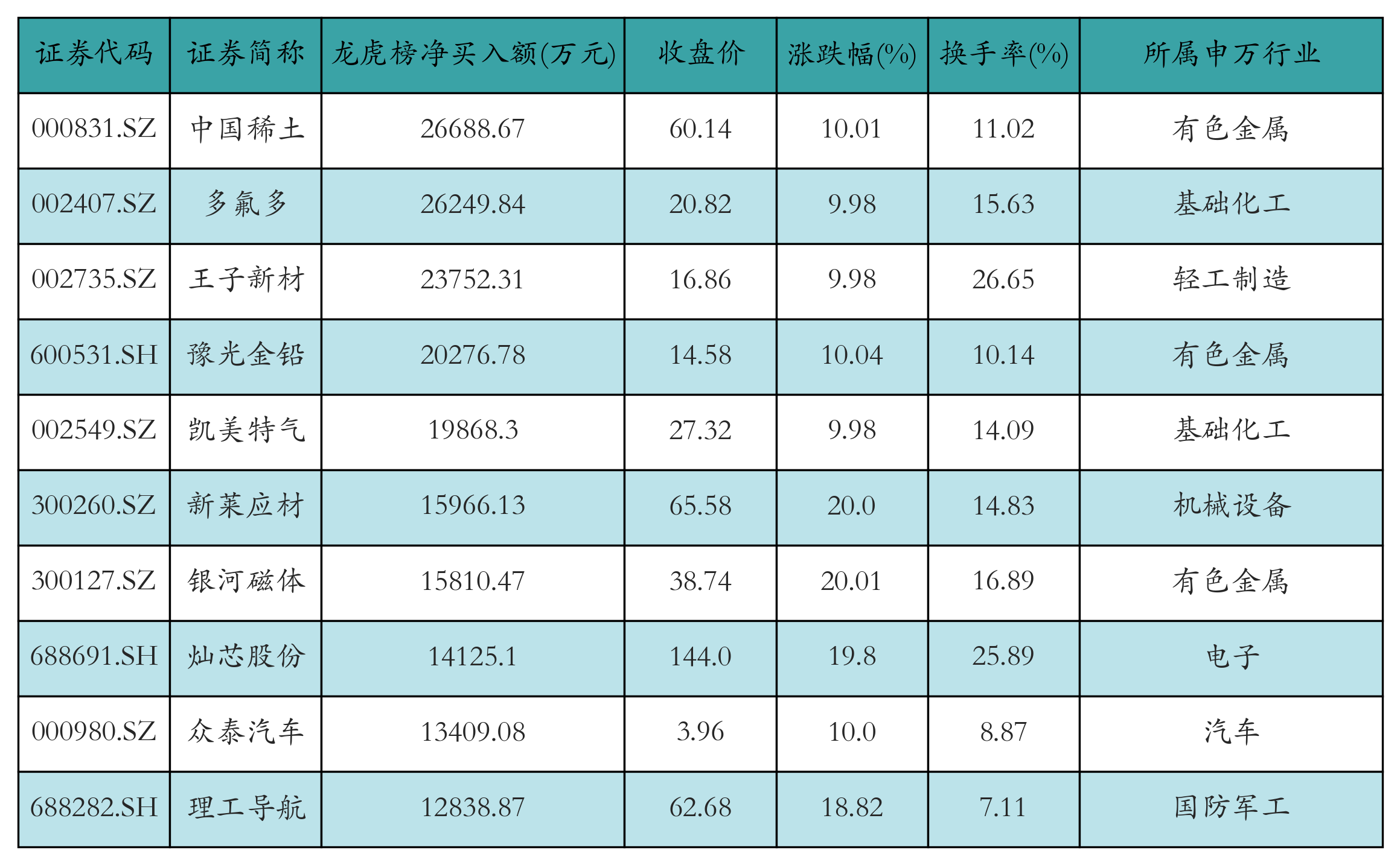 昨日龙虎榜营业部净买入额前10详情见下表: