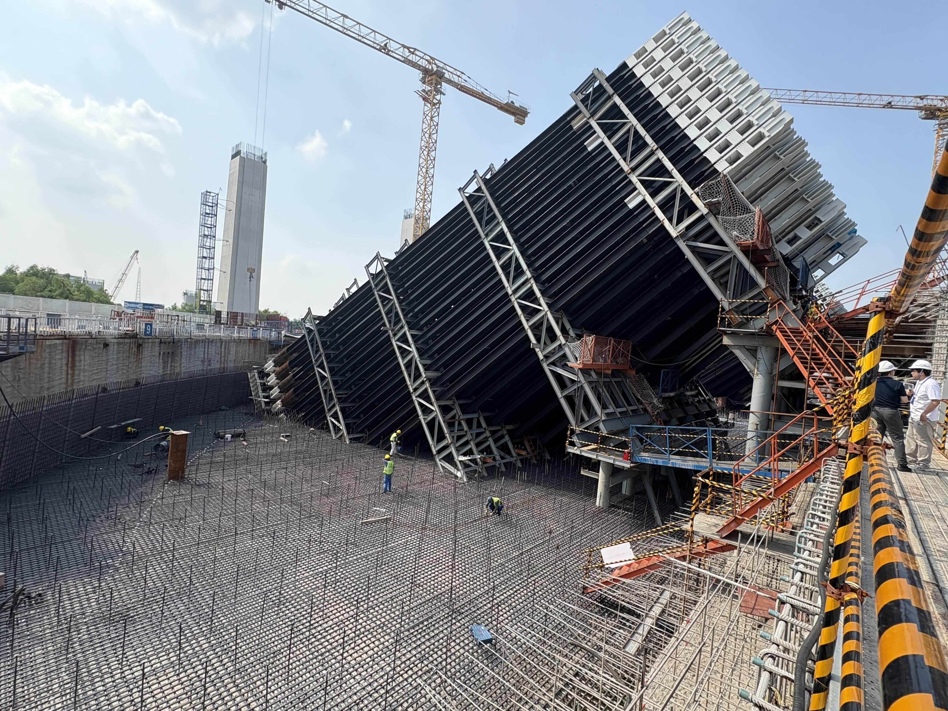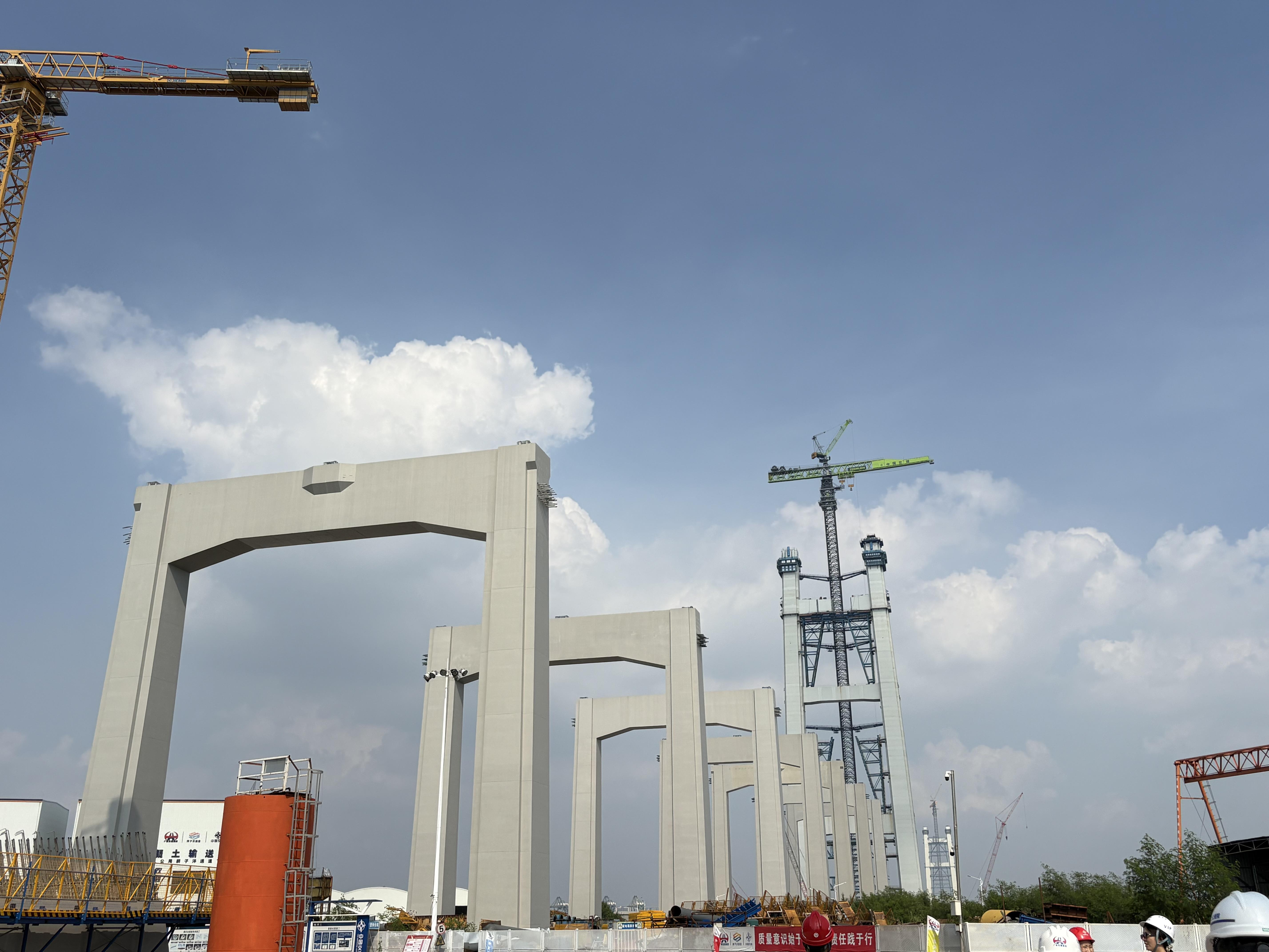 10月11日,“双节”长期后的第一个工作日,珠江口上,记者在狮子洋通道建设现场看到,在近40℃的高温之下,施工人员争分夺秒推进关键节点。