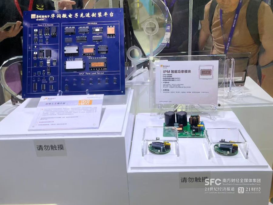 润鹏半导体则展示包括IPM智能功率模块、掩模版、8英寸晶圆片和12英寸晶圆片等创新的工艺路线。此前,润鹏半导体承接华润微电子深圳12英寸晶圆生产线,可广泛应用在新能源、消费电子、汽车电子等终端市场。