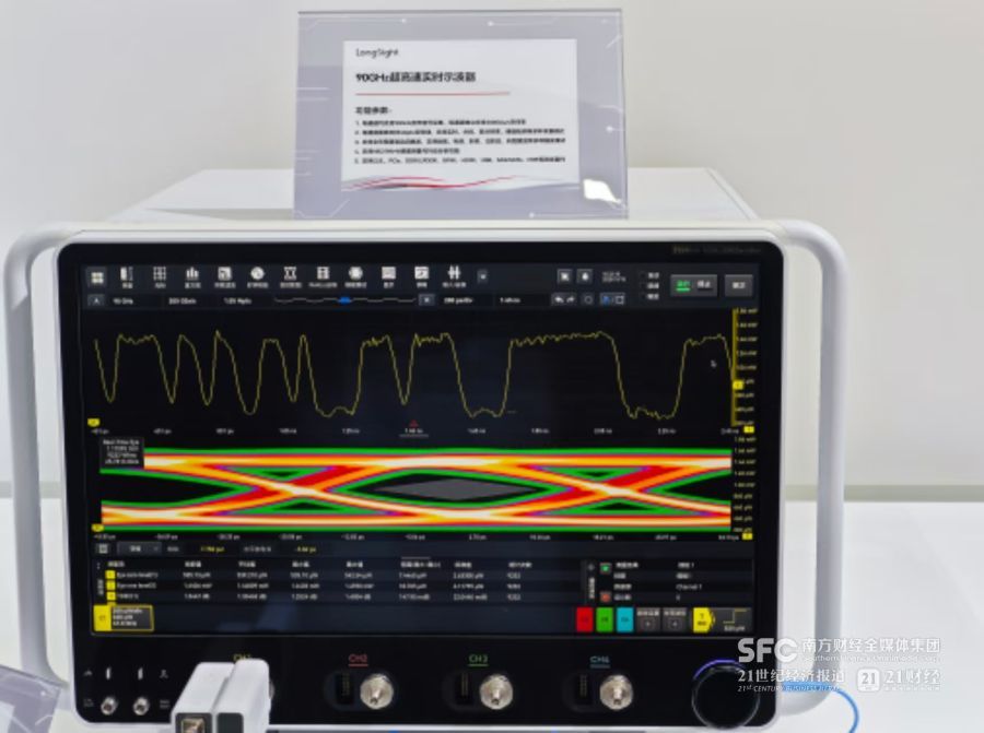 展会上,新凯来子公司万里眼发布自研的新一代超高速实时示波器,带宽突破90GHz。