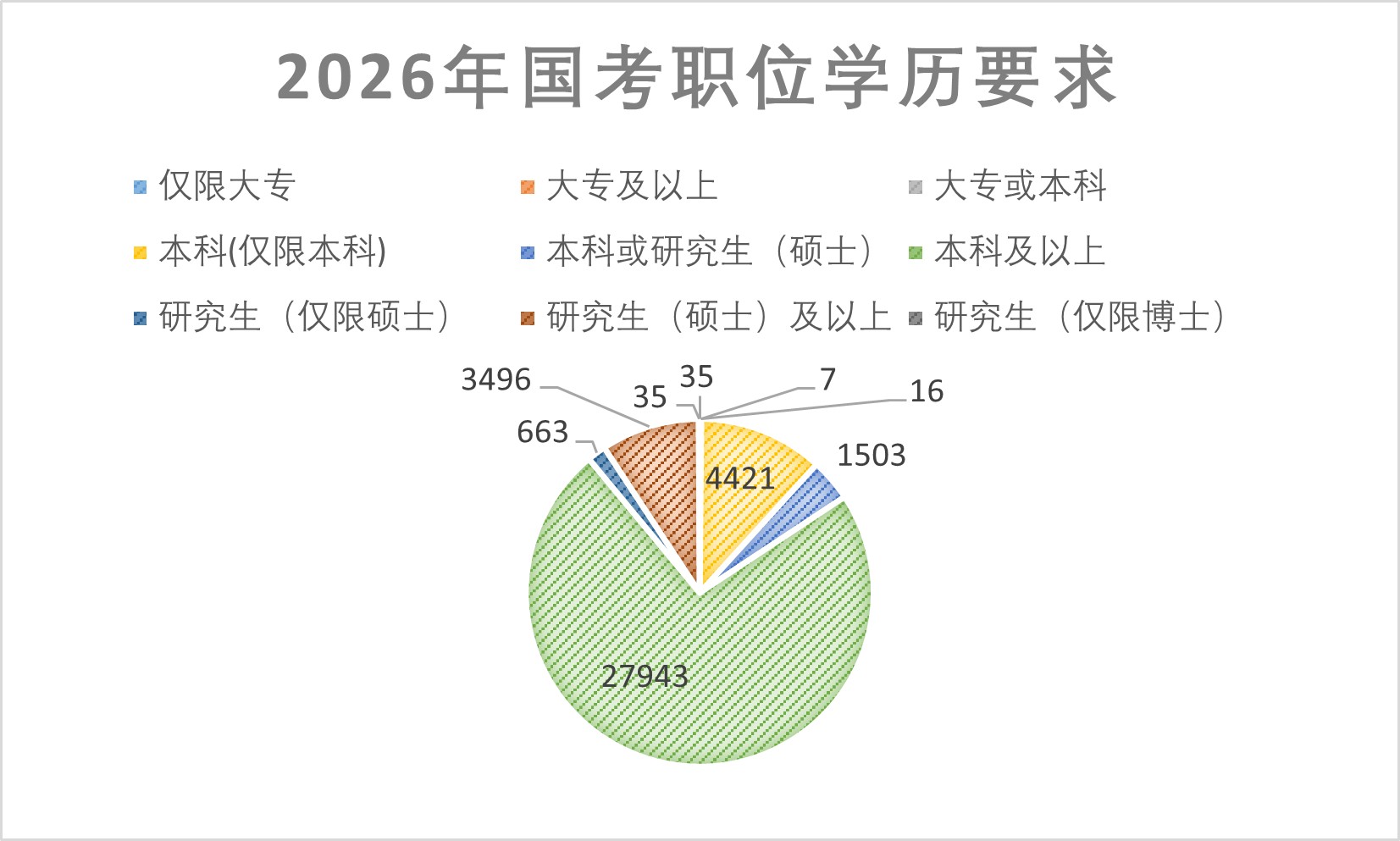 2026年国考招录专业化趋势加强,仅有4人、4个职位不限专业,其余38115人、20712个职位都设置了专业要求,但相对来说还是比较宽泛的,一般都要求某类专业,涵盖范围较广。