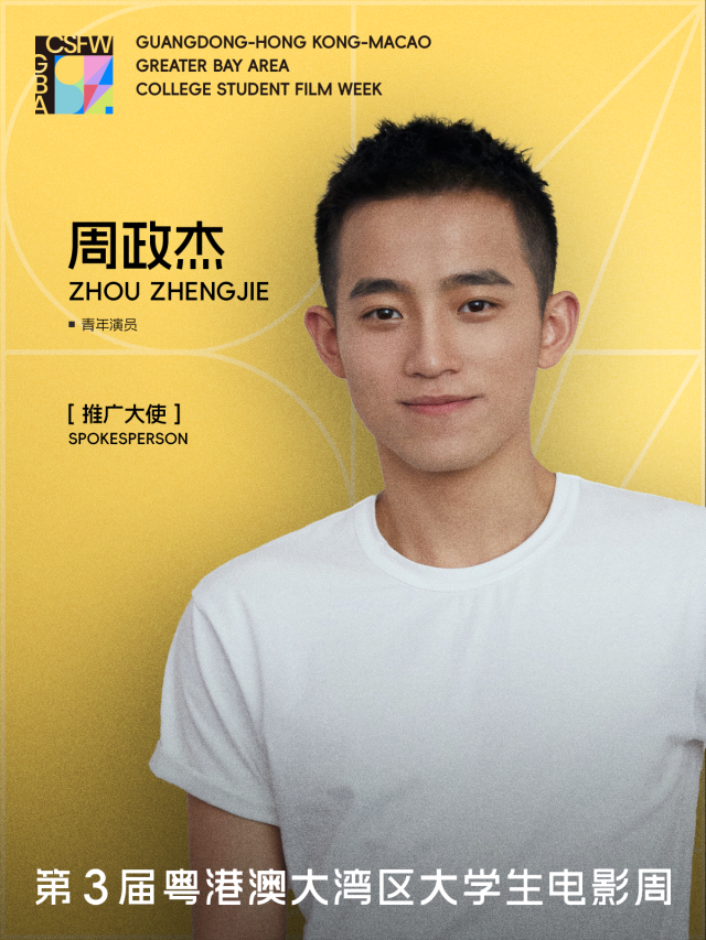 青年演员周政杰受邀担任本届电影周及第21届广州大学生电影展推广大使。他曾出演《志愿军:浴血和平》《蛟龙行动》等多部作品,其青春阳光的形象与电影周的年轻化定位高度契合。