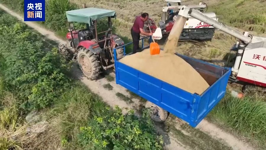 在湖北,种粮大户正拉着刚收割的水稻赶往附近的烘干厂。烘干后的粮食进入存储环节,数字化、绿色化的科技储粮手段全力确保秋粮应收尽收。