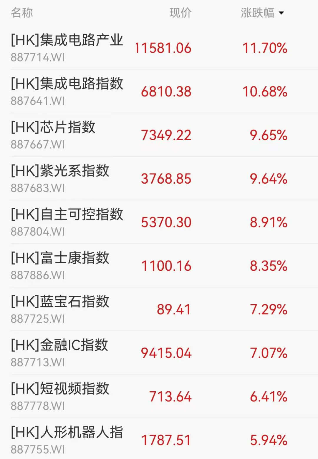 今日,港股科技板块走势强劲。其中,中芯国际涨超12%领涨,快手涨超8%,华虹半导体涨超7%,蔚来涨超6%,百度涨超4%,阿里巴巴、小米、京东涨超3%。