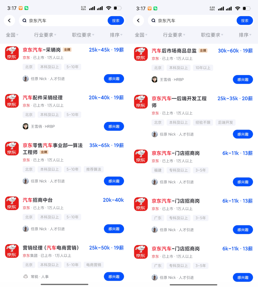 在新车信息密集曝光的同时,记者注意到,京东汽车近期在人才招募上也有大动作。