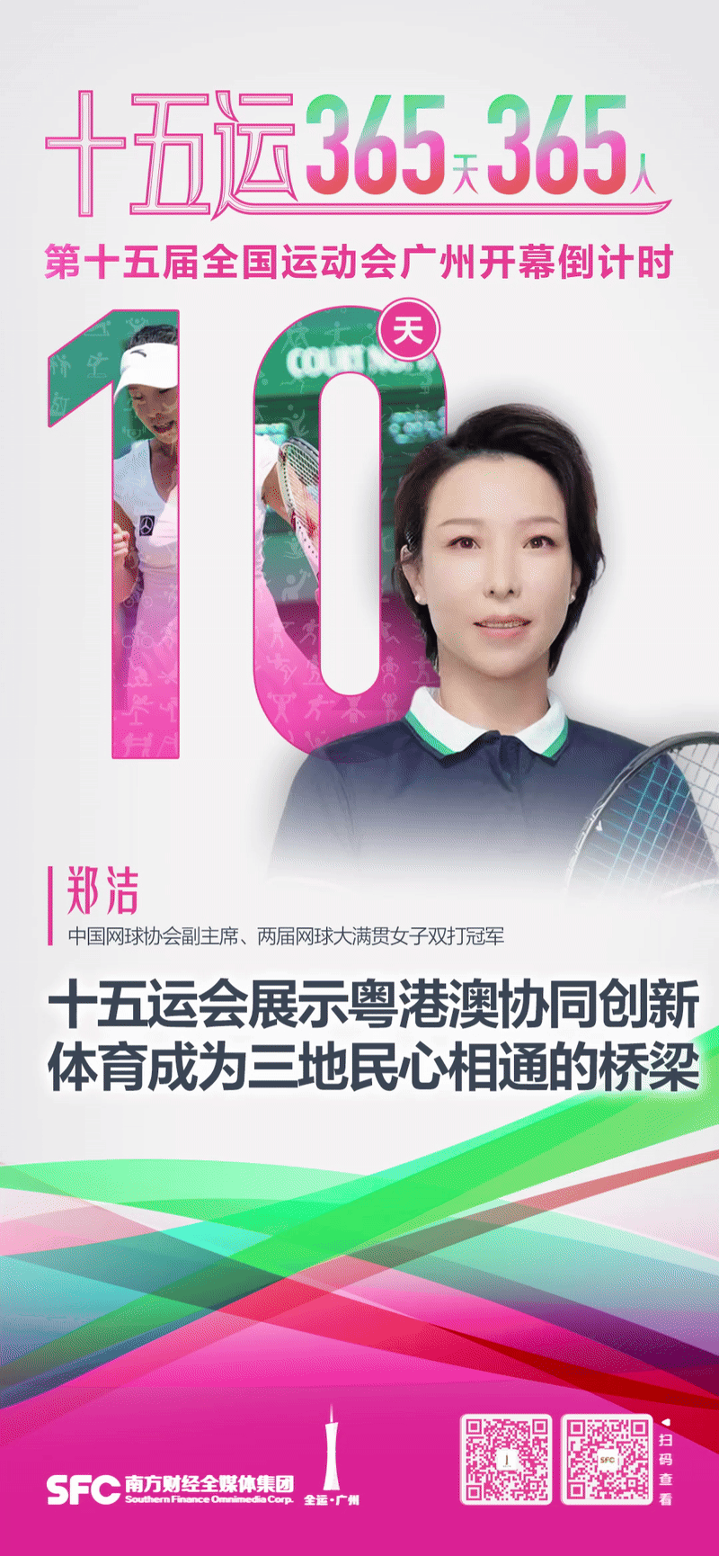 距离第十五届全国运动会开幕仅剩十天,中国网球协会副主席、两届网球大满贯女子双打冠军郑洁,正以运动员的拼搏底色与中国网球运动推动者的责任担当,关注着这场粤港澳联合承办的体育盛会。
