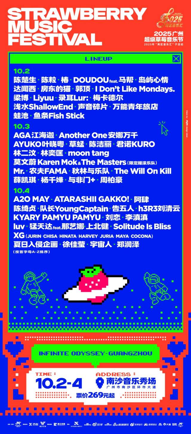 10月2日—4日,2025年“湾区音乐汇”子活动,广州超级草莓音乐节于南沙音乐秀场热烈开唱!