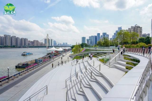 广州塔滨水大台阶位于广州塔北侧,延续了广州塔涟漪曲线形态,打造“挑台仰望,珠水涟漪”的景观效果,绝佳的江景、广州塔合照打卡点!