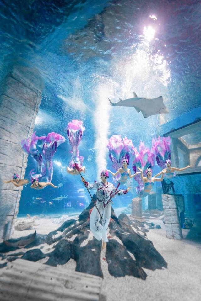 正佳极地海洋世界:美人鱼演出《深海国戏》水下非遗大秀与《青白缘起》双秀连台;