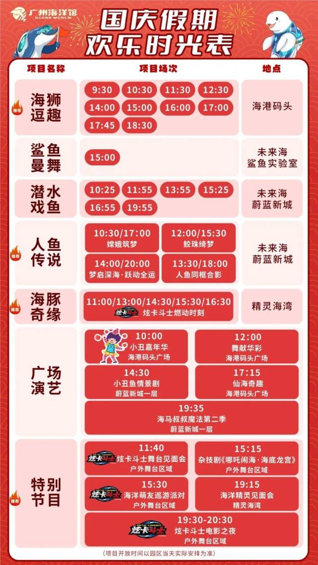 广州海洋馆结合全运主题和海洋特色推出“海洋动物全运会”、美人鱼艺术体操、民族特色舞蹈展演、小丑杂耍嘉年华等精彩日夜游活动,携手人气动画IP炫卡斗士开展巡游打卡活动,联动广州杂技团上演杂技剧《哪吒闹海·海底龙宫》,更有全网超5000万曝光的人气NPC“小丑冰冰”与大家见面互动。