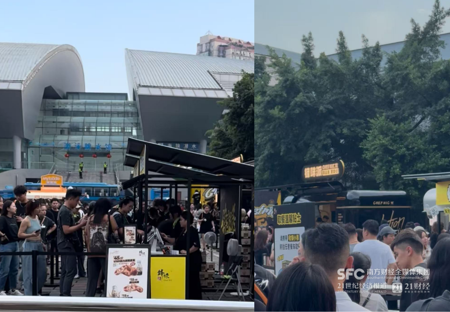 谢霆锋的8万人演唱会,结合其票价保守推算票房收入至少超过6000万元,这还不包括演唱会现场和场地周边商家的餐饮销售收入。21世纪经济报道记者在演唱会现场就注意到,谢霆锋的餐食品牌“锋味”也在演唱会现场售卖,包含奶茶、鸡翅、烤肠的套餐一份45元,从当天下午五点开始就大排长队。