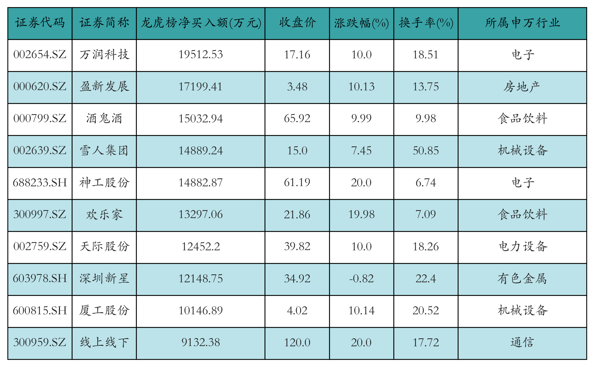 昨日龙虎榜营业部净买入额前10详情见下表: