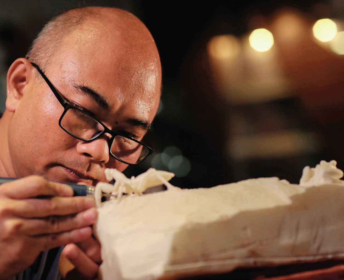 云浮石艺传承人雕刻石艺作品(资料照片)云浮市委宣传部供图