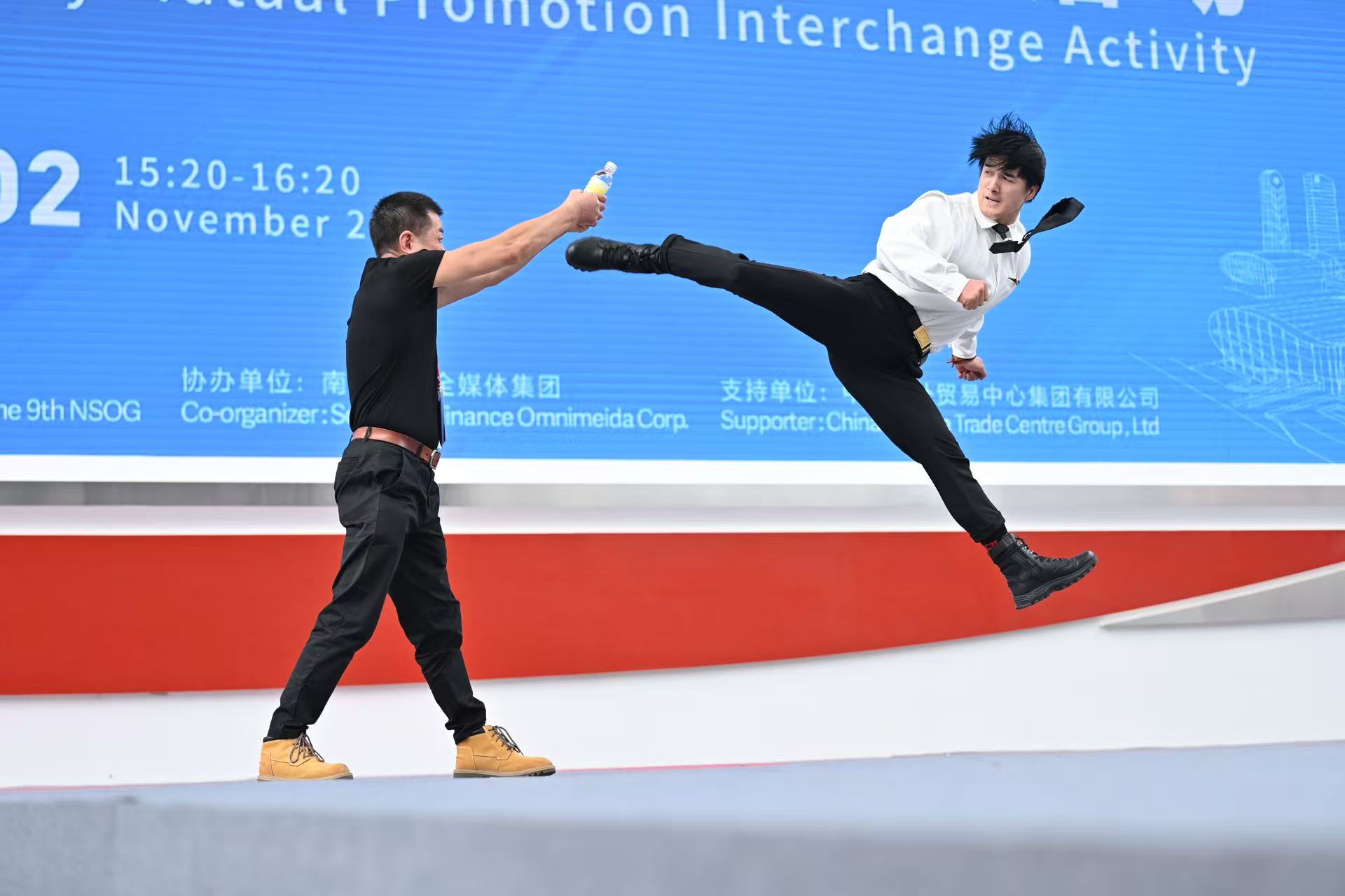 活动现场还呈现了精彩的表演,营造全民迎全运的热烈氛围。十五运会吉祥物“喜洋洋”“乐融融”人偶,伴随十五运会会歌《气势如虹》登台表演,展现赛会活力与动感。世界搏击冠军王延龙现场进行了现代搏击表演,演出与互动赢得台下观众的阵阵喝彩。