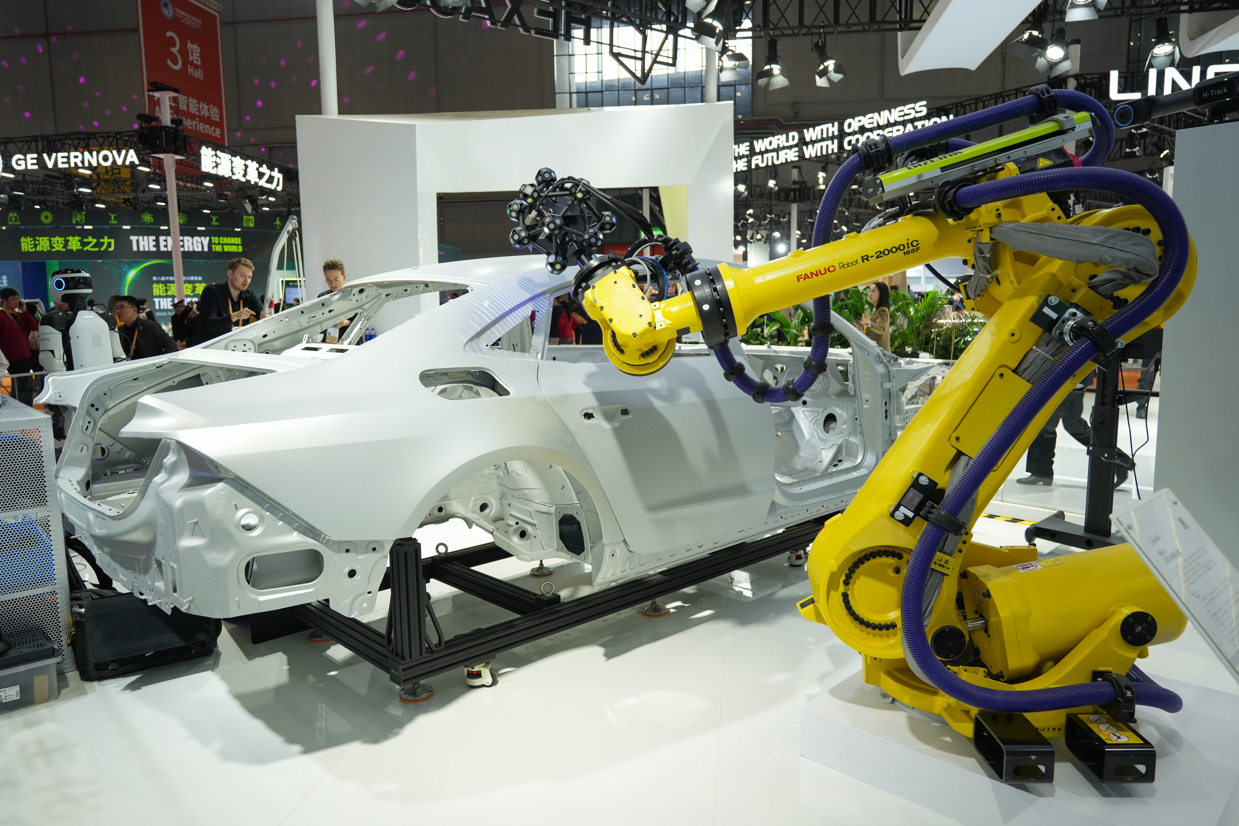 这是11月6日在第八届进博会技术装备展区拍摄的自动化测量系统。新华社记者张子彧摄
