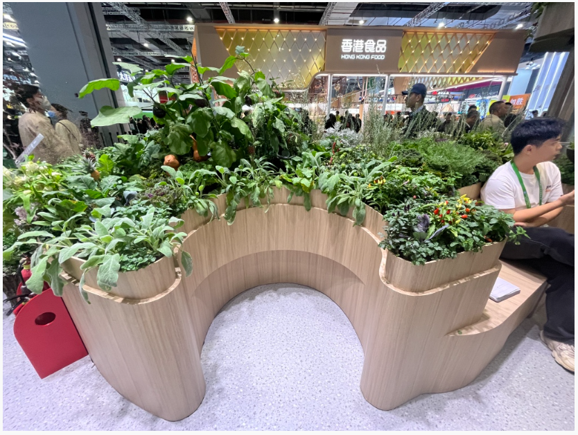 不止宠物经济,在进博会上“银发经济”好物也俯拾皆是。在光明食品集团展区,布置了一座可移动的“适老化花园”:一个定制的容器里按照需求搭配好各种瓜果、蔬菜、鲜花,不但种类和造型可以随心所欲,还能送货上门。同时,“花园”中央留出休息区,这个区域根据轮椅的高度设计,方便乘轮椅的人坐着欣赏。“银发”题材从医疗展区拓展至消费品展区。