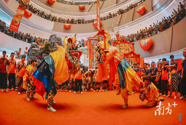 在大型购物中心内,你可以逛街、品尝美食、体验娱乐活动……在汕尾天虹购物中心,你还多了一个选择,那就是看非遗展演。据汕尾天虹购物中心非遗空间主理人张小焕介绍,商业体内每周都会举办非遗活动,每月至少举办一次大型非遗演出,西秦戏、汕尾渔歌、甲子英歌舞等经典海陆丰非遗项目都曾在此展演。