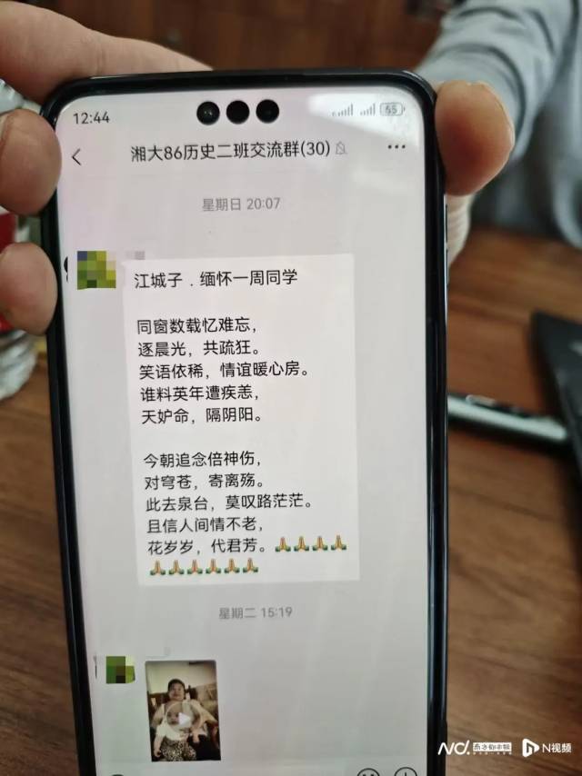张河清:他和我很像,是一个比较感性、挺讲感情的人。在之前的同学群里,他会不时发起聚会活动,召集湘大的同学见面。他走后,我们重新建了个群,因为看到他会伤心。我发完文章后,有另一位同学出来写了一首诗,怀念他。