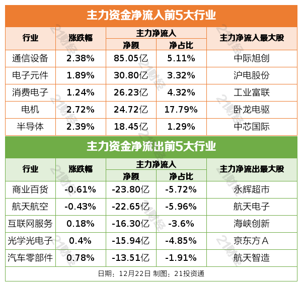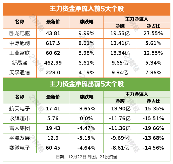 12月22日,市场高开高走,三大指数集体反弹,创业板指涨超2%。截至收盘,沪指涨0.69%,深成指涨1.47%,创业板指涨2.23%。沪深两市成交额1.86万亿,较上一个交易日放量1360亿。
