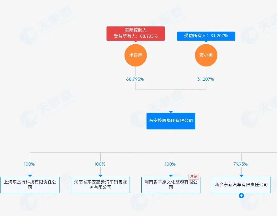 公开资料显示,东安集团始创于1993年,总部位于河南新乡,旗下有保时捷、宝马、奥迪、鸿蒙智行、上汽大众等多个品牌的门店。根据天眼查,东安控股集团有限公司注册资本为39975万人民币,法定代表人贺小梅。