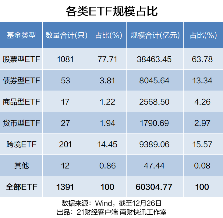 2025年12月26日,中国公募基金市场迎来标志性里程碑——ETF(交易型开放式指数基金)总规模正式突破6万亿元大关,达到6.03万亿元,年内ETF规模增加2.29万亿元,同比增长突破60%,市场规模与吸引力迈上新台阶。