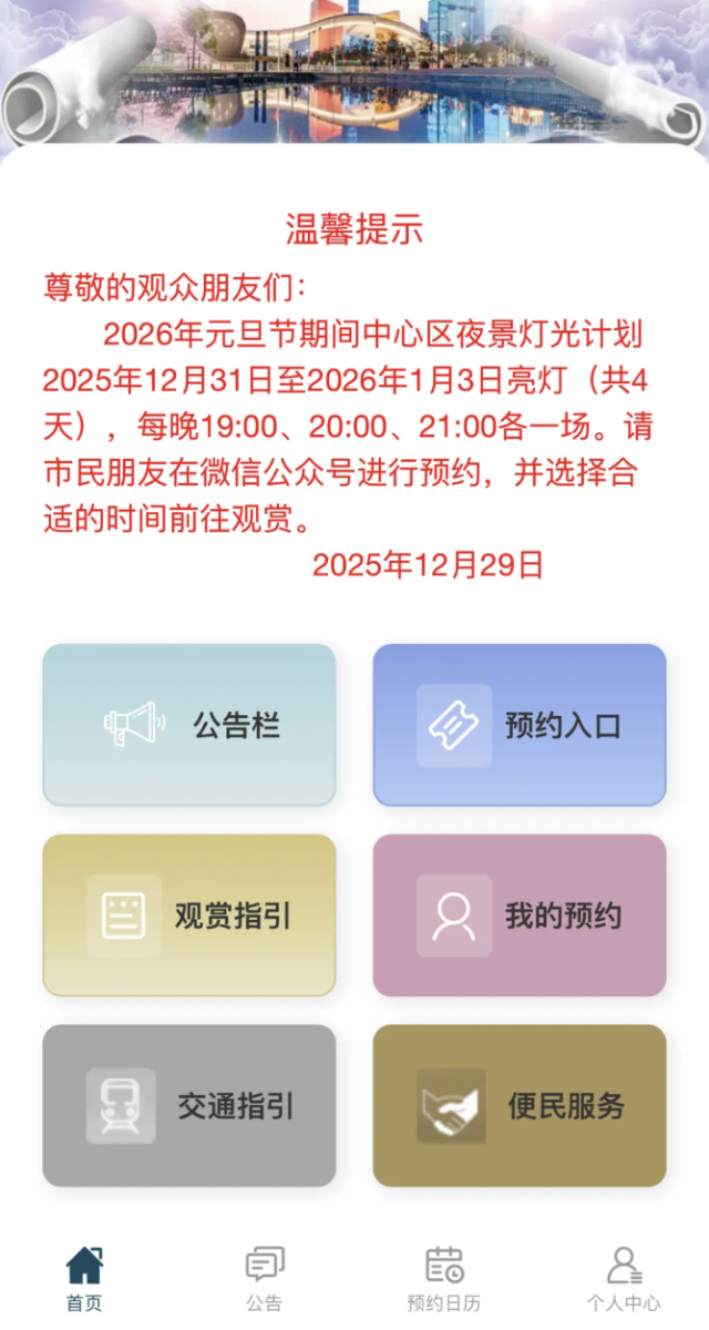 务必提前通过“福田中心区夜景灯光预约导引服务”微信小程序预约
