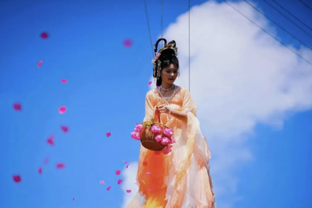 古镇换上“繁花盛宴”主题的新装,璀璨灯海与梦幻花影交织。