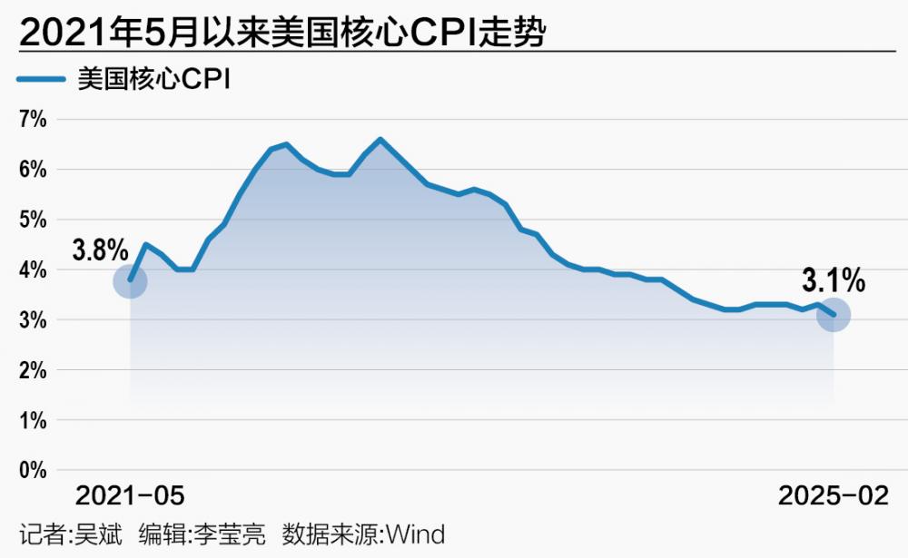 中航证券首席经济学家董忠云对21世纪经济报道记者分析称,美国2月CPI低于市场预期,核心通胀的回落进一步表明短期价格压力有所缓和。然而,单月数据的改善并不意味着通胀问题已彻底解决,当前核心CPI同比增速仍高达3.1%,服务价格黏性依然较强,且劳动力市场薪资增速仍高于通胀目标匹配水平,显示通胀下行趋势并不稳固。
