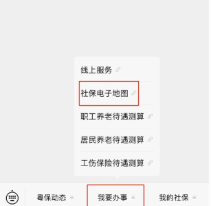 微信搜索“广东社保”公众号,点击进入公众号首页,点击菜单栏【我要办事】-【社保电子地图】,进入“社保地图”页面。