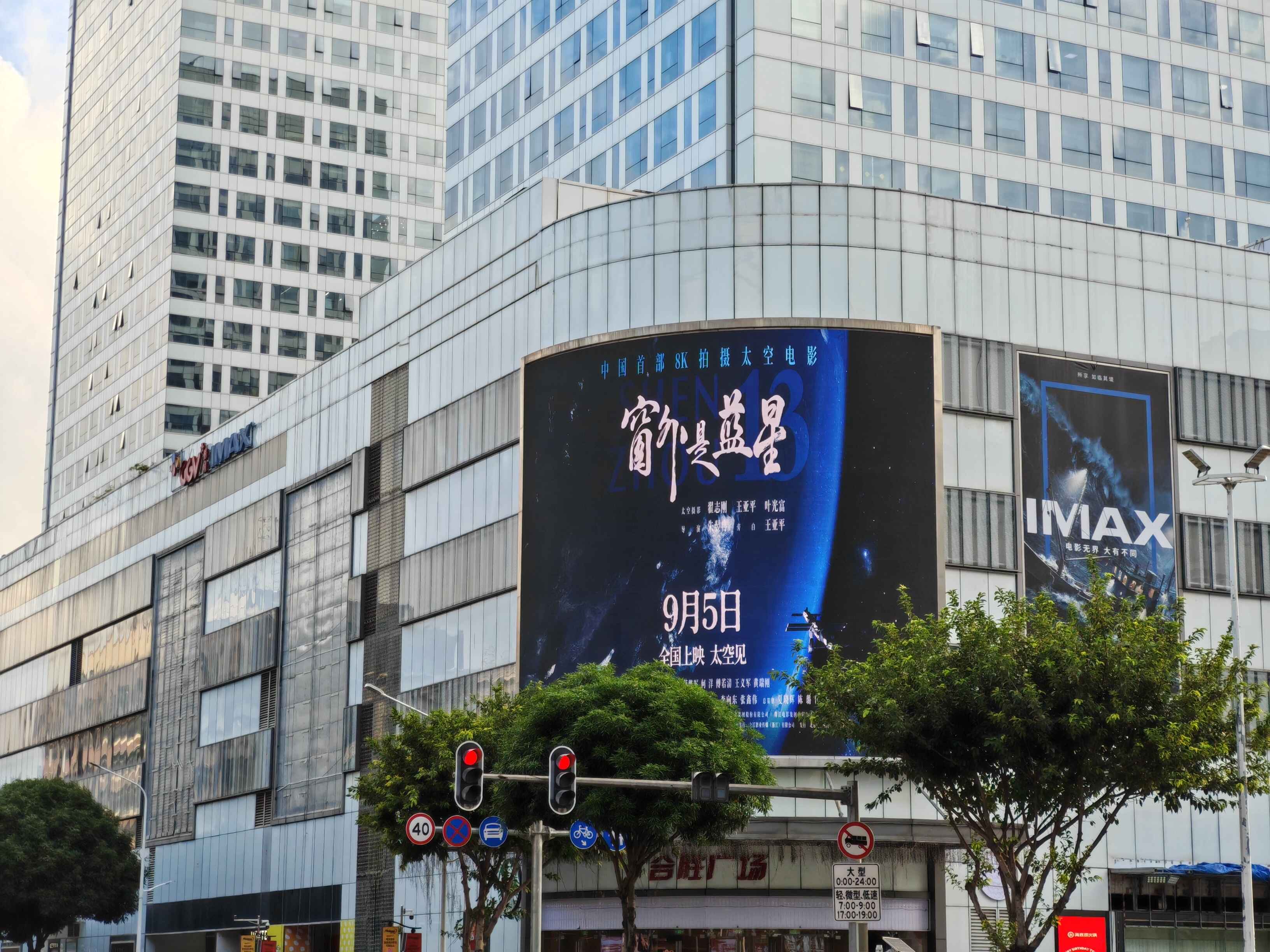 在中山,中山日报大厦、利和广场亮起户外大屏,“中国首部太空电影”字样照亮了观众脸上的憧憬。
