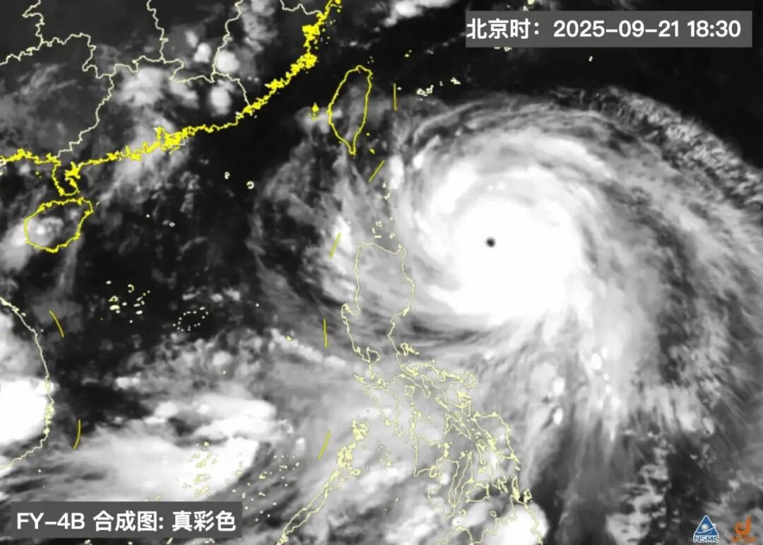 9月21日18时30分,台风“桦加沙”的卫星影像国家卫星气象中心风云四号卫星天气应用平台截图