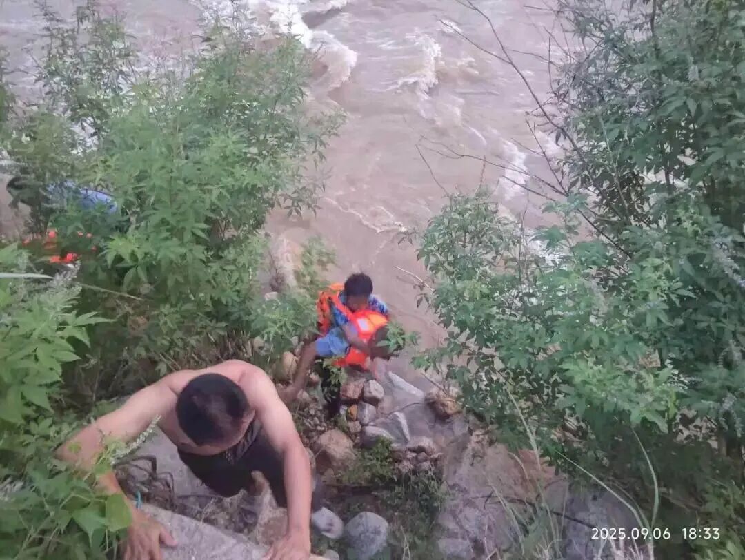 9月6日,马伟生正在河道的桥头巡逻,突然听到有村民呼救:“有人被水冲下来了!” 他立即去现场查看,发现一名男孩被困在河中央的岩石上,“他看上去很惊慌”,同行的男孩母亲和另外3名小孩已经被人救上岸。