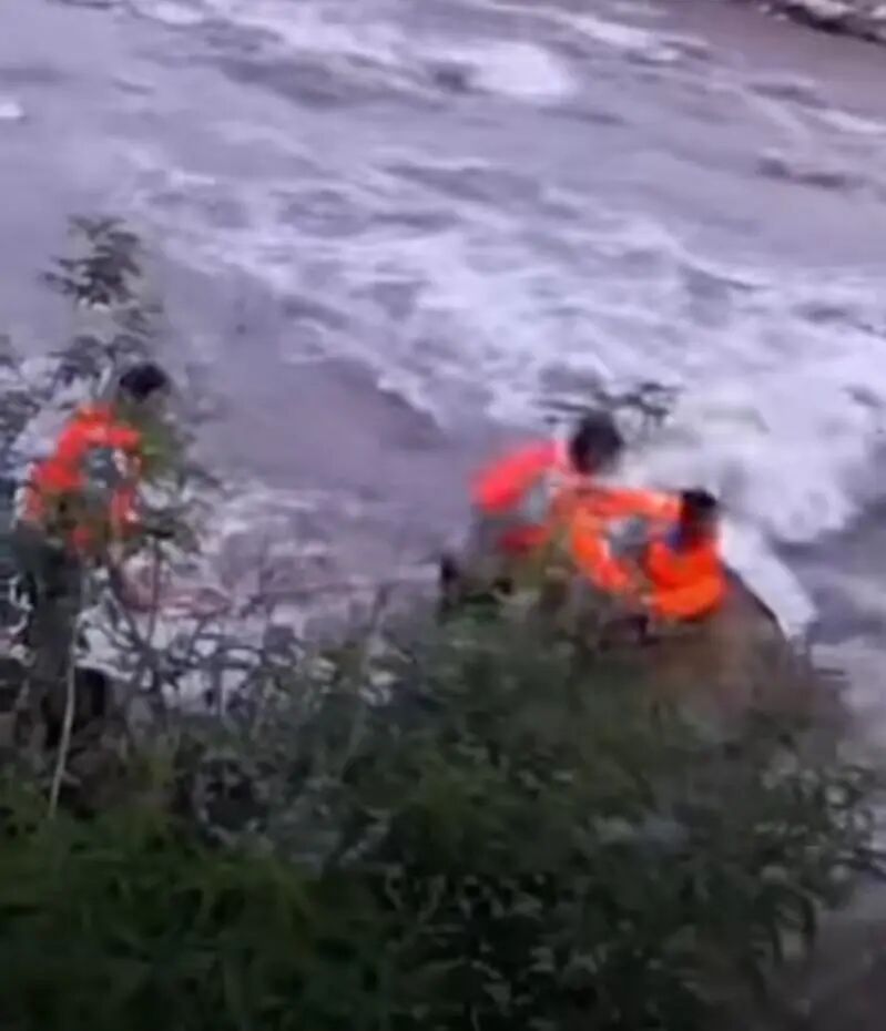 他找来一根长杆子,用力抵住男孩的后背,防止他被水流冲走,“我让他紧紧抓住石头,不要害怕,我们会来救他” 。 男孩很听话,脸朝下趴着,紧紧抱着岩石。