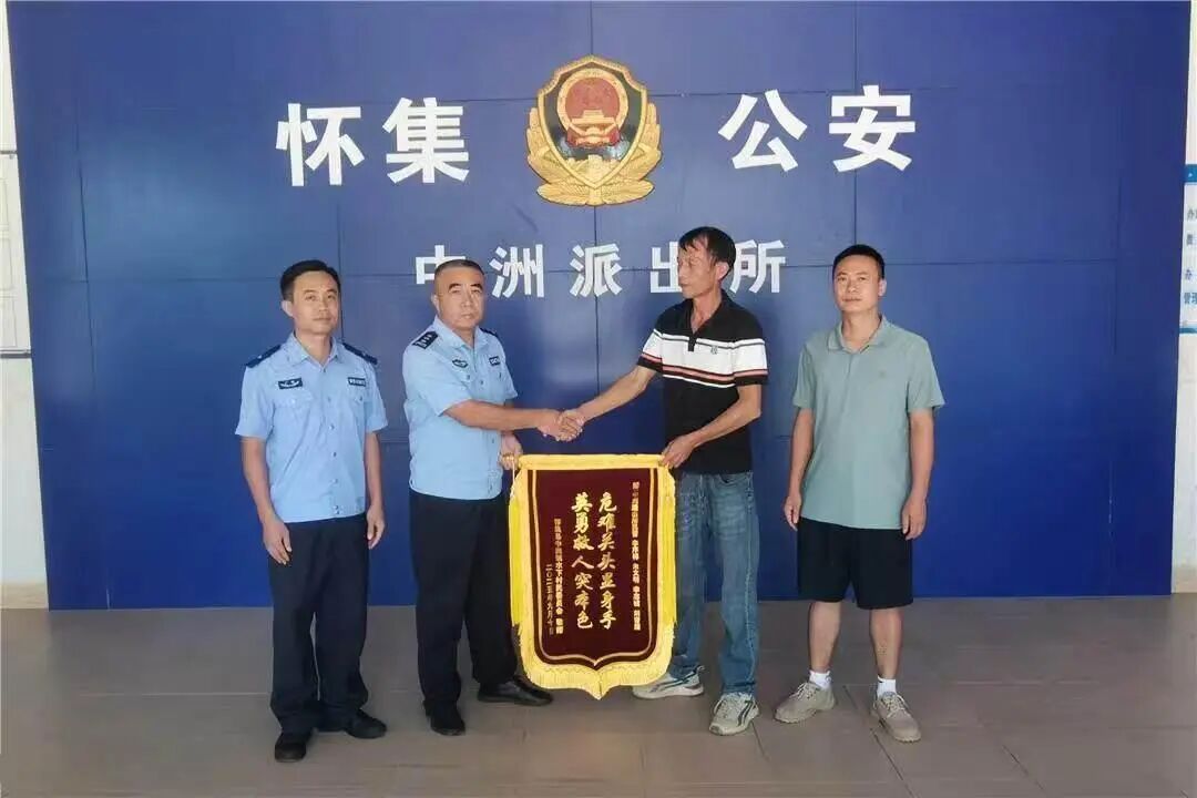 9月15日,水下村村委会干部和获救男孩家属一同前来,将一面写有“危难关头显身手 英勇救人突本色”的锦旗,郑重交到李序样手中,并连声致谢:“知道警察来了,我们就知道有救了。感谢你们冒着生命危险下河救人,这份恩情我们永远铭记。”